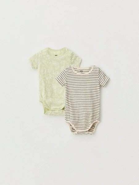 Представляем набор из двух трикотажных боди для малышей от Sela — идеальный выбор для родителей, ценящих комфорт, качество и стиль! 👶 Эти боди созданы с особой заботой о нежной коже младенцев, обеспечивая максимальную мягкость и уют в течение всего дня. В комплекте вы найдете два уникальных дизайна: одно боди выполнено в освежающем мятном цвете с изящным лиственным узором, второе — в спокойном бежевом оттенке с классическими тонкими полосками. Такое сочетание позволяет легко создавать разнообразные милые образы для вашего малыша.