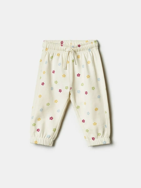 Выполненные из высококачественного 100% хлопка, эти джоггеры дарят коже малыша невероятную мягкость и позволяют ей дышать. Эластичный пояс со шнурком гарантирует надежную и комфортную посадку, не сдавливая животик, а манжеты на резинке обеспечивают дополнительную фиксацию и защиту от холода. Молочный цвет в сочетании с ярким разноцветным принтом в виде милых цветочков делает эти брючки по-настоящему универсальными и подходит как для мальчиков, так и для девочек. Прекрасный выбор для демисезонного гардероба.