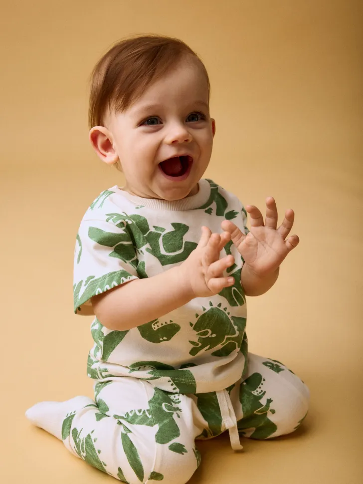 Милый и яркий принт с дружелюбными динозаврами добавит игривости и веселья в повседневный гардероб вашего крохи. Эти брюки станут любимой частью одежды для прогулок в парке, игр дома или поездок в гости. Они легко стираются и быстро сохнут, сохраняя свою форму и яркость цвета даже после многочисленных стирок, что делает их незаменимыми в каждом детском шкафу. Эластичный пояс обеспечивает удобную посадку без давления, а манжеты на ножках предотвращают сползание. Отличный выбор для современных родителей, ценящих качество, практичность и стиль! Создайте комфортный и радостный образ для вашего маленького исследователя вместе с этими замечательными брюками.
