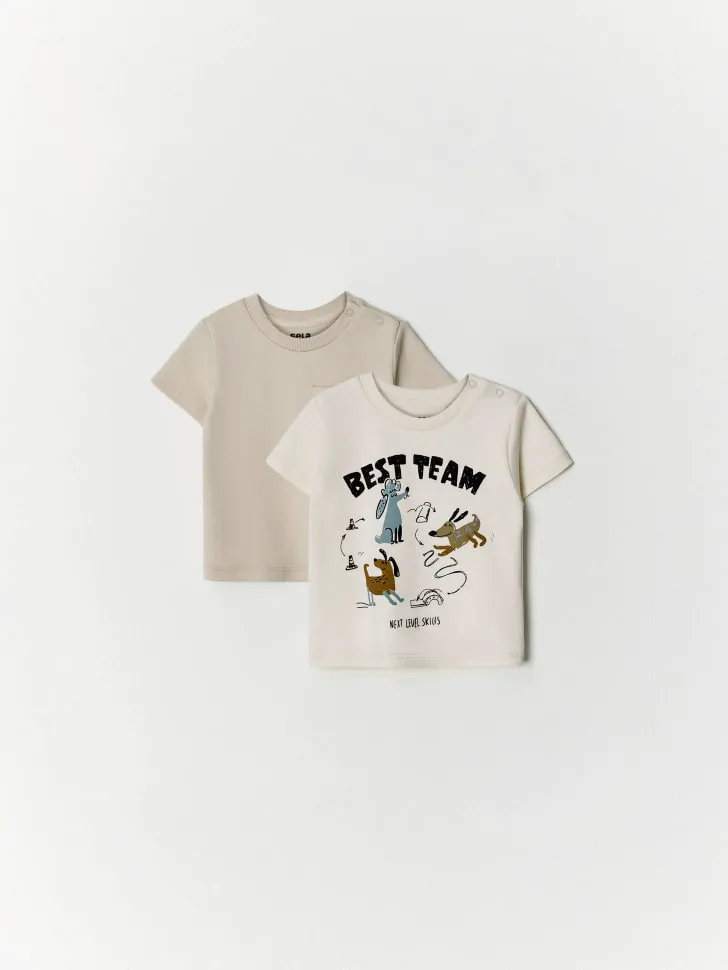 Подарите своему малышу нежность и комфорт с нашим замечательным набором из двух футболок! Созданные специально для самых маленьких, эти футболки обеспечат максимальное удобство в течение всего дня. Мы использовали только 100% натуральный, гипоаллергенный хлопок, который позволяет коже дышать и не вызывает раздражений, делая каждую секунду носки приятной.