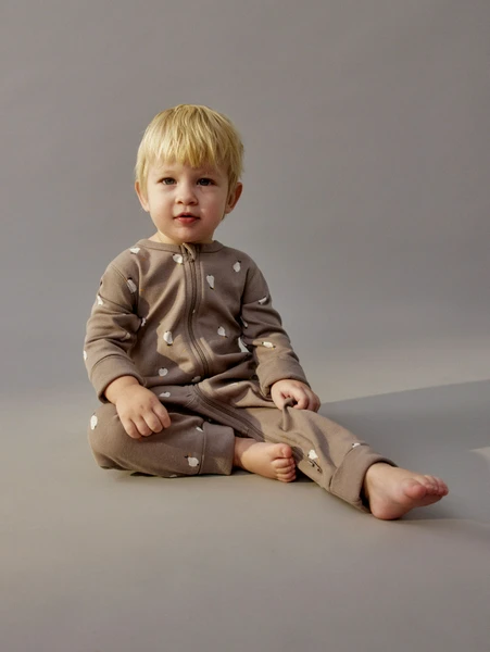 Этот комбинезон изготовлен из мягкого и приятного к телу трикотажа, обеспечивая максимальное удобство в любое время дня. Удобная застежка-молния по всей длине значительно упрощает процесс переодевания и смены подгузников, экономя драгоценное время родителей. Стильный принт добавляет милого очарования, а эластичные манжеты гарантируют идеальную посадку и защиту от сквозняков. Подходит для повседневной носки и для особых случаев.
