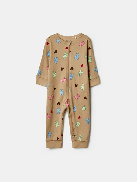 Дизайн комбинезона продуман до мелочей: основной бежевый цвет украшен милым и ярким принтом в виде разноцветных мишек и сердечек, который непременно поднимет настроение. Благодаря универсальному крою и нейтральной расцветке, комбинезон подходит как для мальчиков, так и для девочек. Удобная молния по всей длине значительно облегчает процесс переодевания и смены подгузников, а эластичные манжеты на рукавах и штанинах обеспечивают надежную фиксацию и предотвращают задирание.