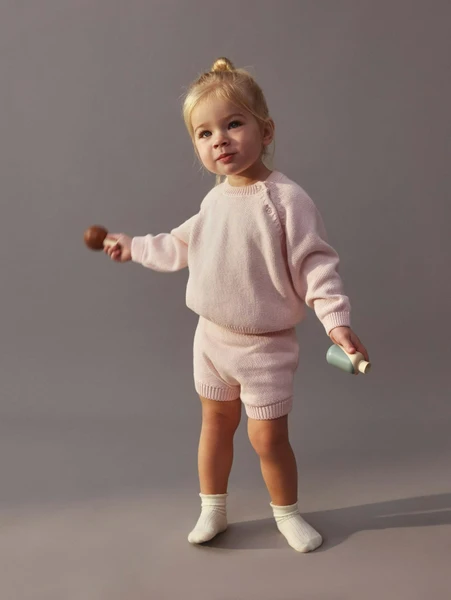 Представляем невероятно нежный и практичный комплект от SELA, созданный специально для комфорта ваших малышей! Этот очаровательный набор включает в себя мягкий джемпер и удобные шорты, которые идеально подходят для ежедневной носки. Выполненный в приятном нежно-розовом цвете, он добавит уюта и стиля в гардероб вашего ребенка.