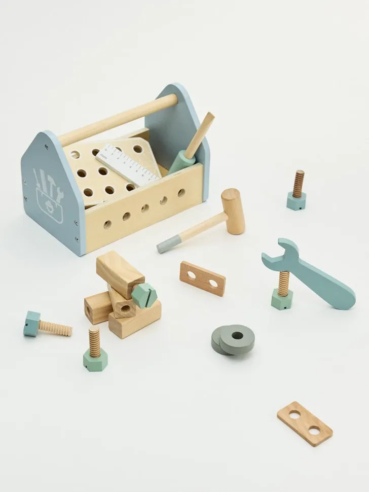 Деревянный игрушечный набор Инструменты, голубой, деревянный, арт. 17005