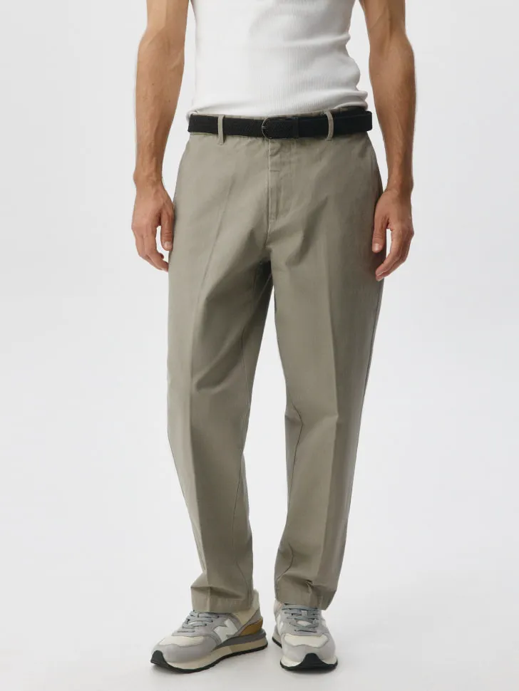 Откройте для себя идеальное сочетание стиля и удобства с нашими брюками чиносами со средней посадкой. Эти брюки созданы для тех, кто ищет универсальный элемент гардероба, способный адаптироваться к любой ситуации – от офисной рутины до неформальных встреч. Благодаря своему классическому крою и средней посадке, они обеспечивают безупречную посадку и подчеркивают достоинства фигуры, гарантируя при этом максимальный комфорт на протяжении всего дня.