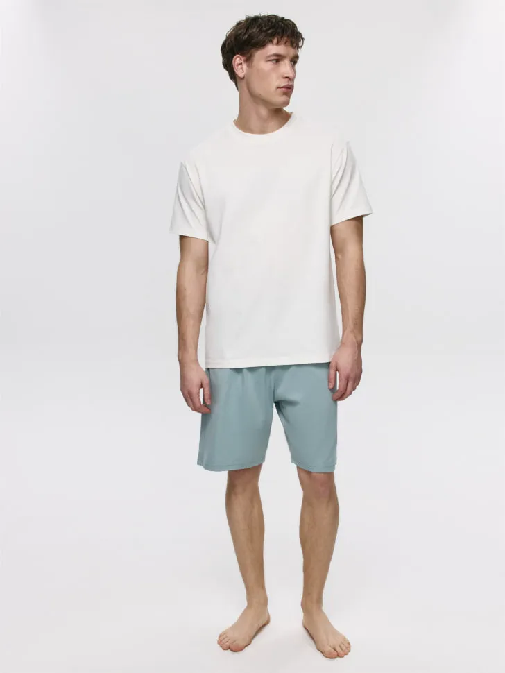 Представляем вашему вниманию идеальный пижамный комплект, который перевернет ваше представление о домашнем комфорте! Этот стильный и функциональный набор включает в себя мягкую футболку и удобные шорты, созданные специально для того, чтобы обеспечить вам максимальное расслабление после долгого дня. Каждый элемент комплекта разработан с учетом потребностей современной женщины: легкие и дышащие ткани деликатно обволакивают тело, позволяя коже свободно дышать и обеспечивая приятные ощущения на протяжении всего времени носки.