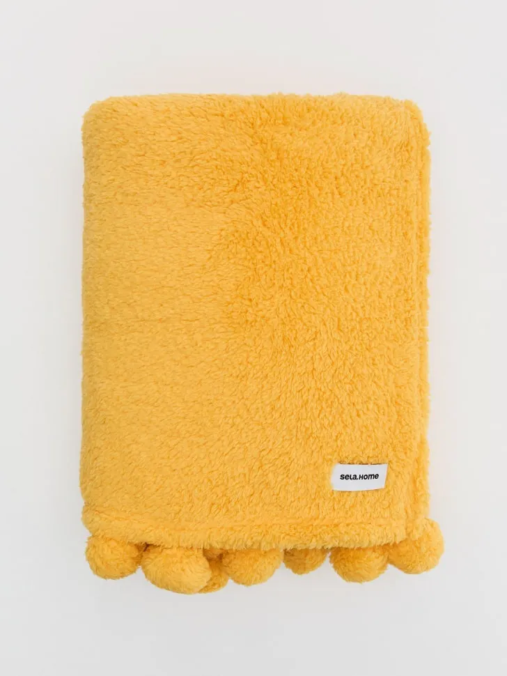 Флисовый плед с помпонами, желтый, арт. 0012345
