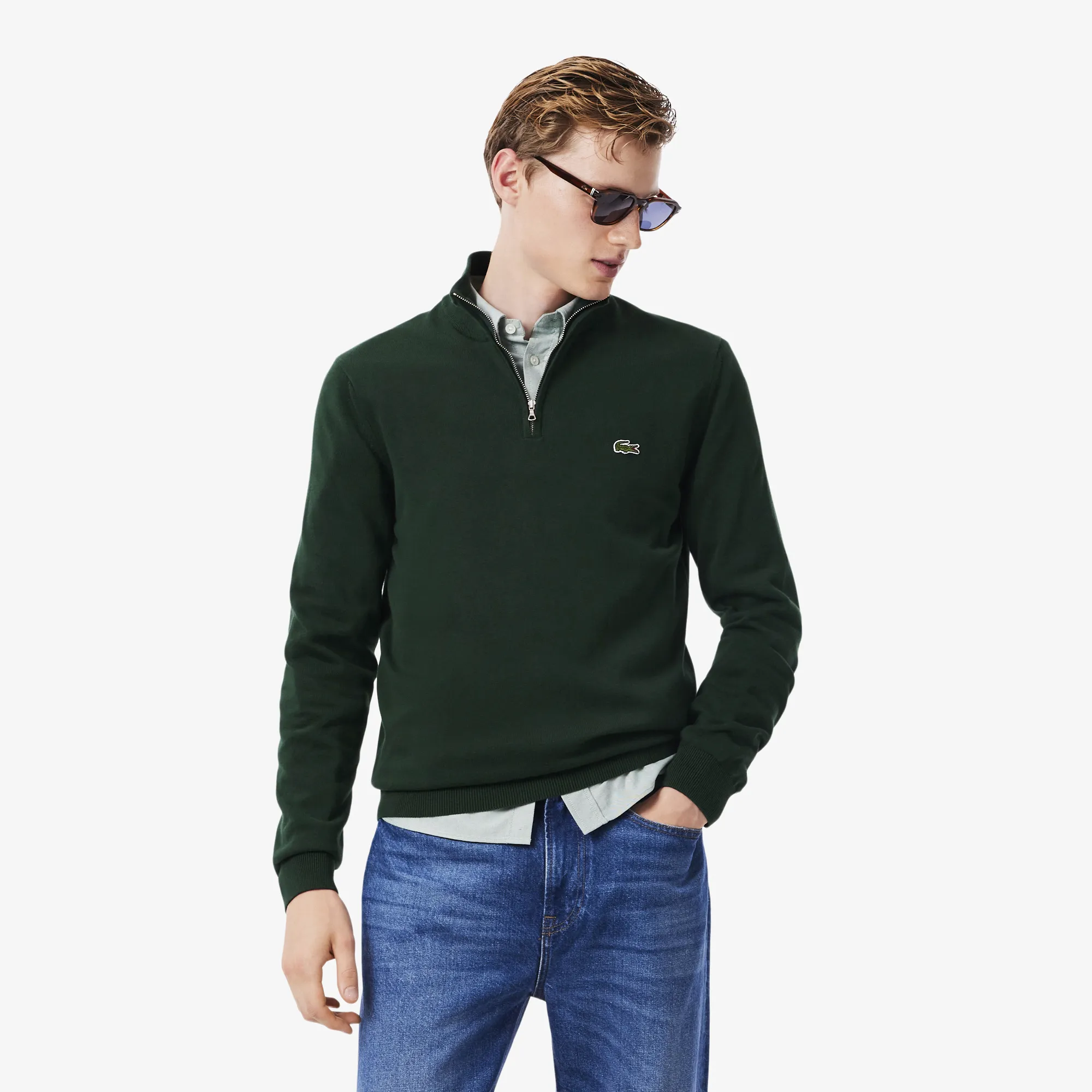 Мужской хлопковый свитер Lacoste на молнии с высоким воротом, зеленый, арт. ah1980