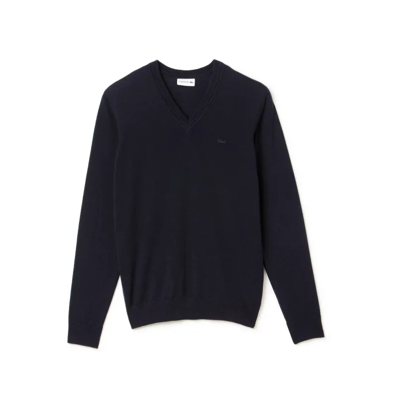 Мужской шерстяной свитер Lacoste с V-образным вырезом, синий, арт. ah2987