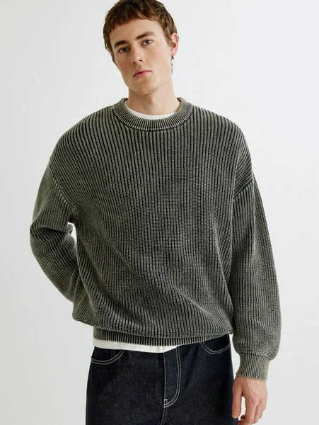 Модель выполнена из качественного вязаного полотна, которое обеспечивает максимальный уют и приятные ощущения при носке. Особенностью джемпера является модный эффект стирки, который придает изделию слегка состаренный вид и особую текстуру, выделяя его среди прочих. Глубокий оттенок темно-серого меланжа прекрасно вписывается в любую палитру, позволяя легко комбинировать его как с классическими джинсами, так и с брюками.