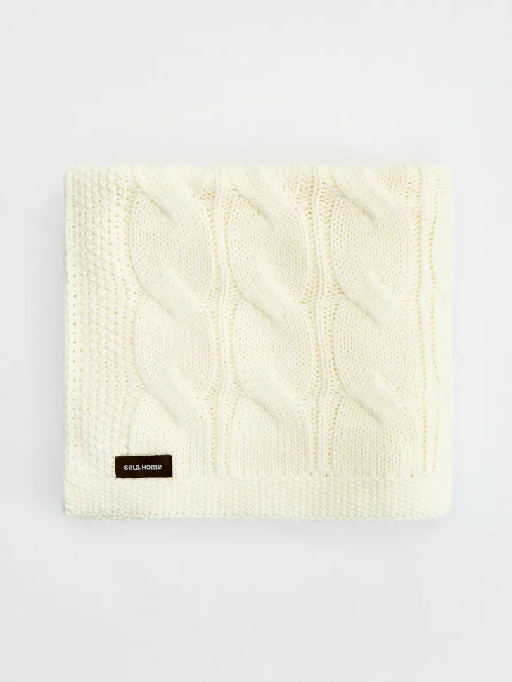 Вязаный плед, молочный, арт. pld001