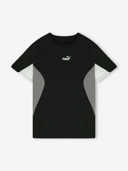 - Универсальный дизайн: Классический черный цвет и элегантный принт с логотипом Puma позволяют легко комбинировать футболку с различными элементами гардероба.