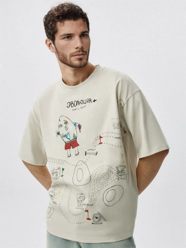 Откройте для себя идеальное сочетание стиля и комфорта с нашей футболкой RELAXED FIT с принтом! Это не просто одежда, это ваш пропуск в мир, где мода встречается с непринужденной элегантностью. Футболка создана для тех, кто не желает жертвовать удобством ради внешнего вида. Её свободный крой обеспечивает полную свободу движений, а высококачественные материалы дарят невероятное ощущение мягкости и легкости на коже.