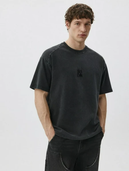 Оверсайз крой гарантирует максимальную свободу движений и дарит ощущение расслабленности, а ненавязчивый, но стильный принт на груди добавляет изделию уникальности. Футболка представлена в универсальном темно-сером цвете, который легко комбинируется с различными элементами гардероба.