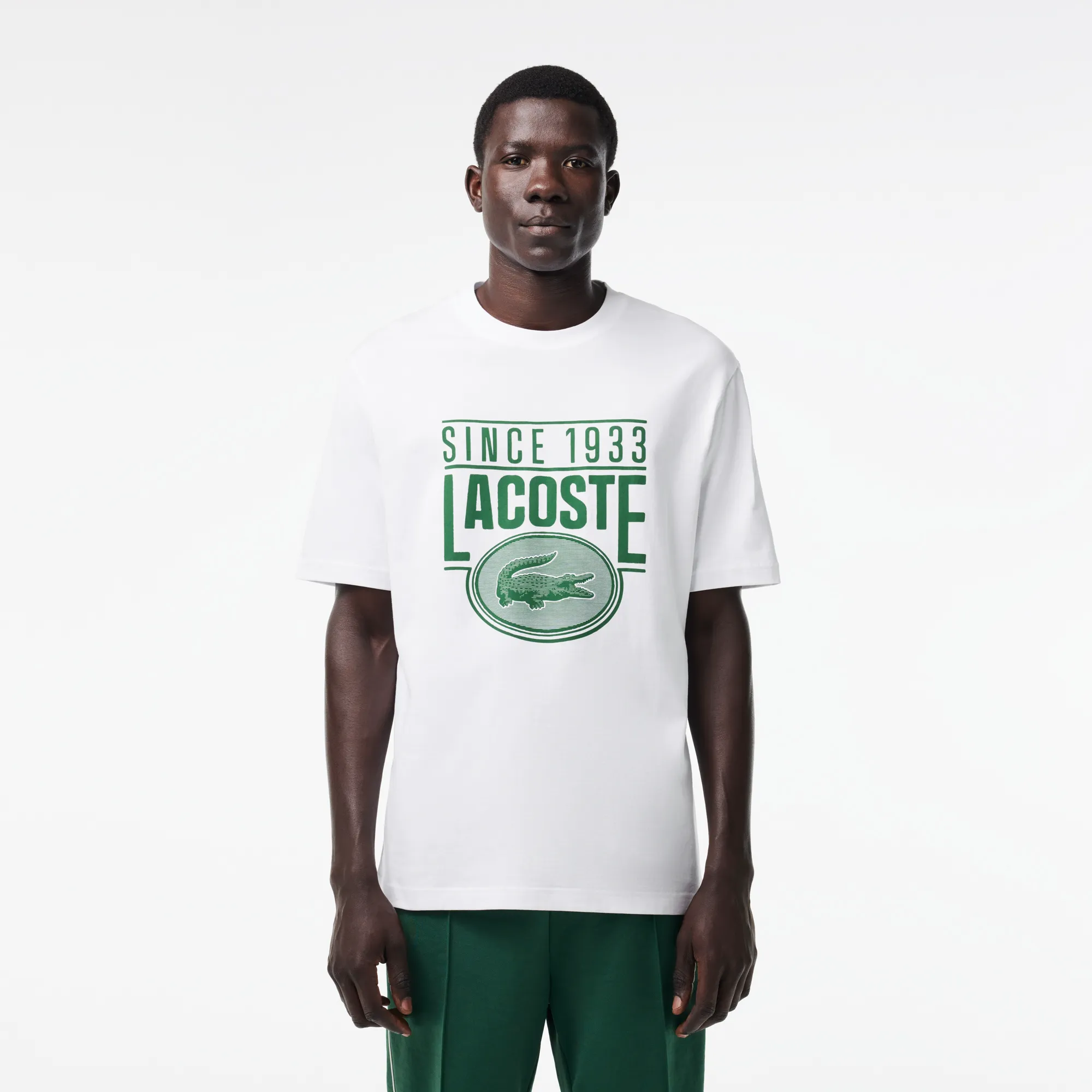 Представляем вашему вниманию мужскую футболку Lacoste Regular Fit — воплощение классического стиля и безупречного комфорта. Эта модель, выполненная в элегантном белом цвете, станет универсальной и незаменимой основой вашего повседневного гардероба, легко комбинируясь с любыми элементами вашего образа. Она идеально подходит как для создания расслабленных уличных луков, так и для более строгих, но комфортных ансамблей.