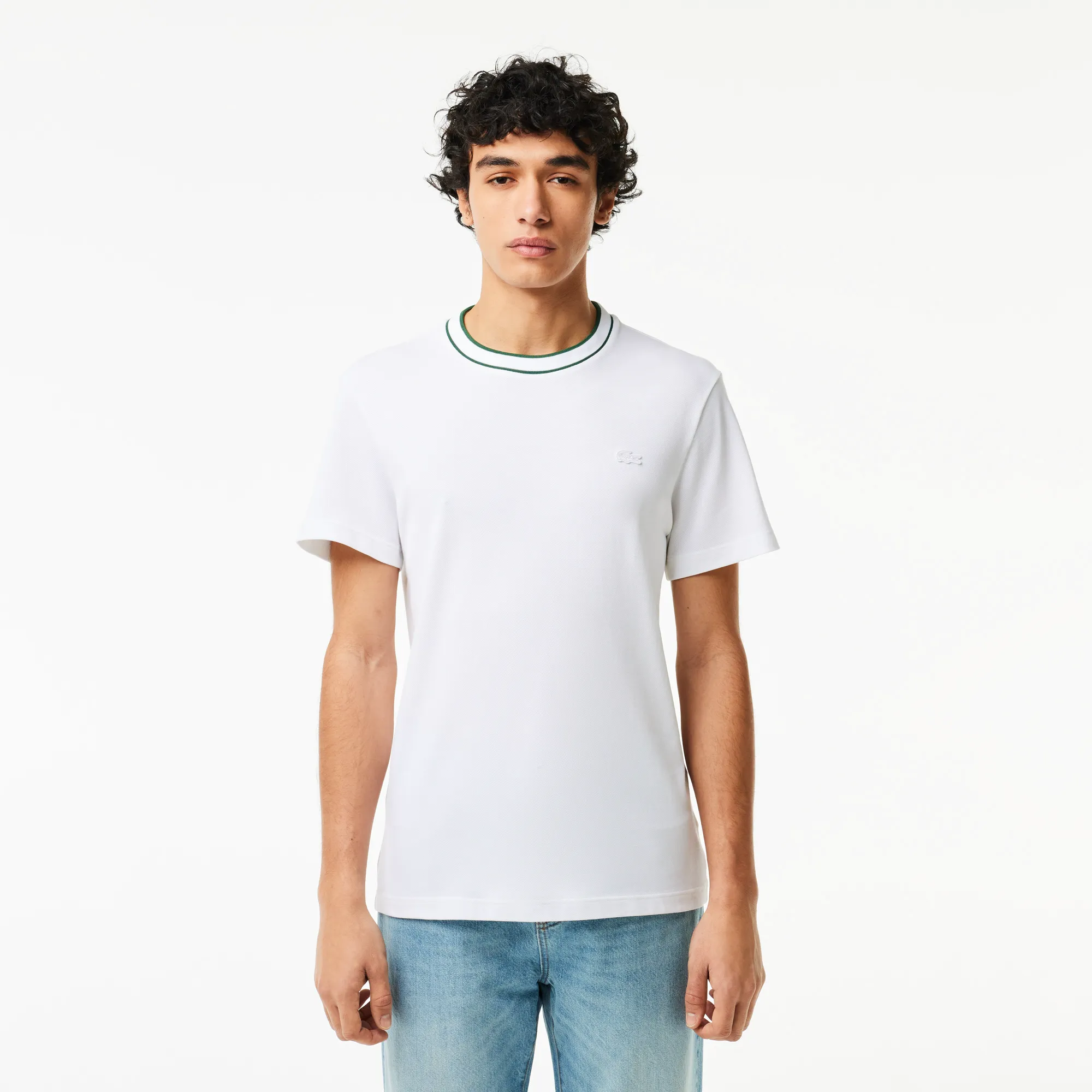 Мужская футболка Lacoste с воротником в полоску, белый, арт. th8174