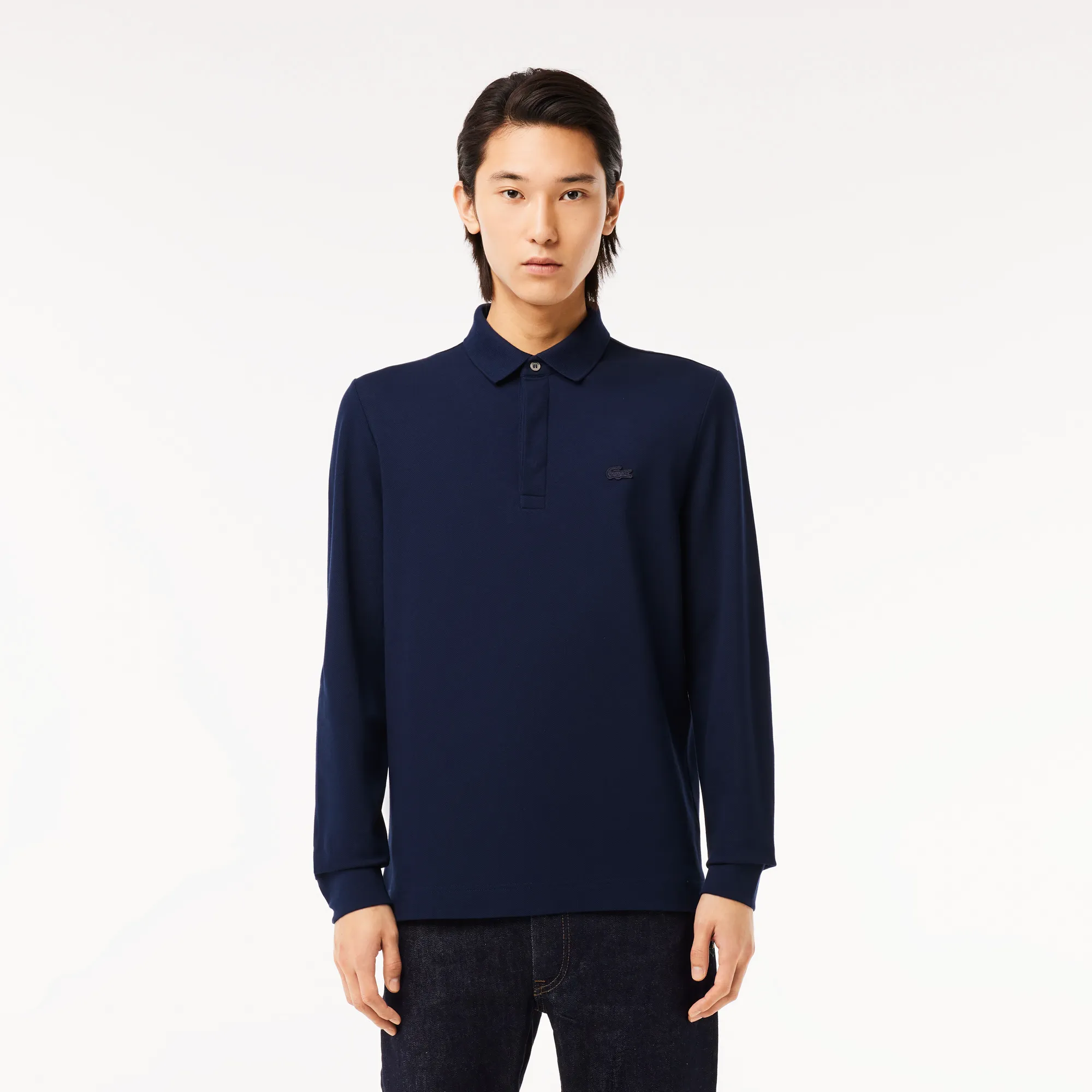 Откройте для себя икону стиля – мужское поло Lacoste с длинными рукавами в глубоком синем цвете. Это классический элемент гардероба, который сочетает в себе элегантность, функциональность и непревзойденное качество, характерное для бренда Lacoste.