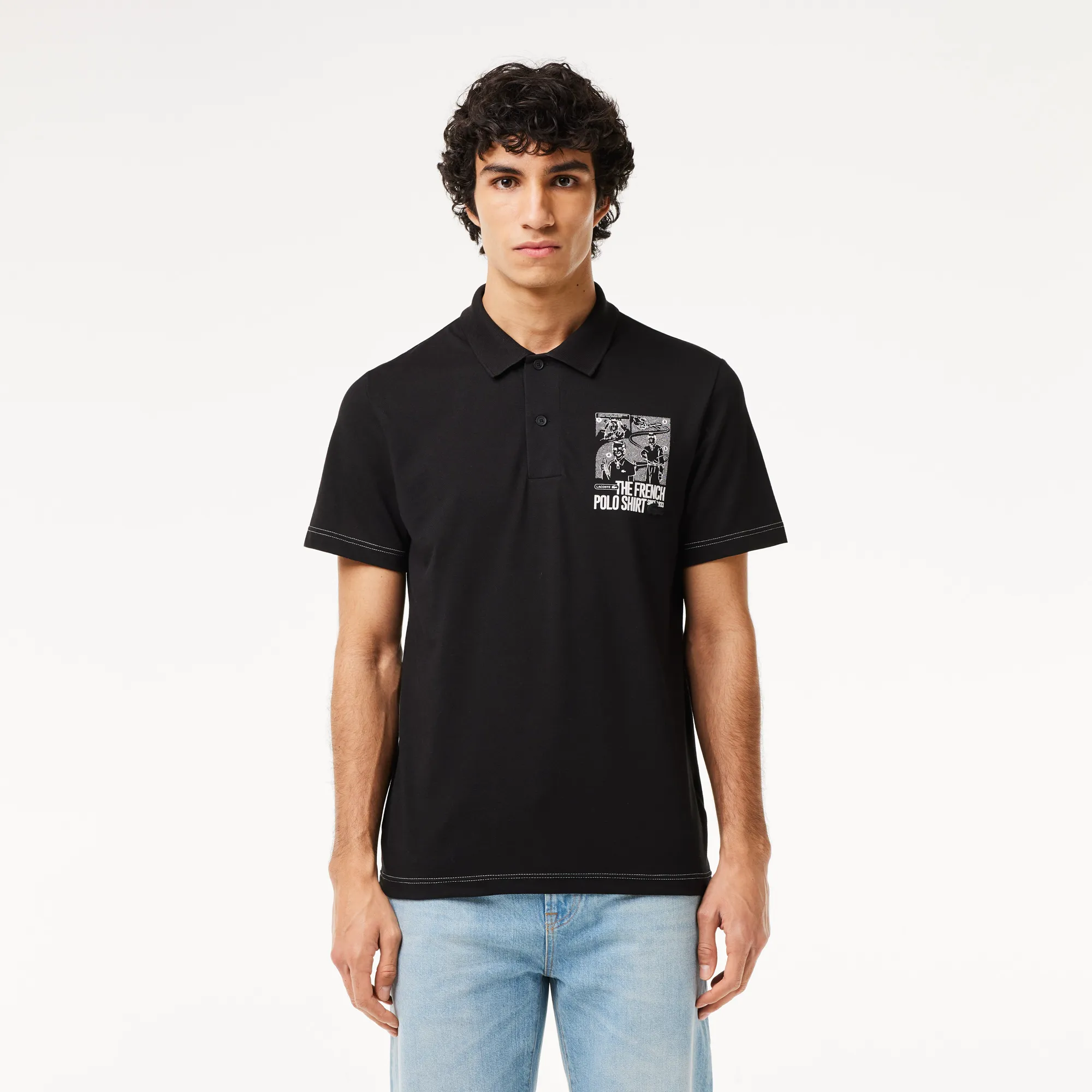 Мужское поло Lacoste с контрастным принтом, черный, арт. ph7416