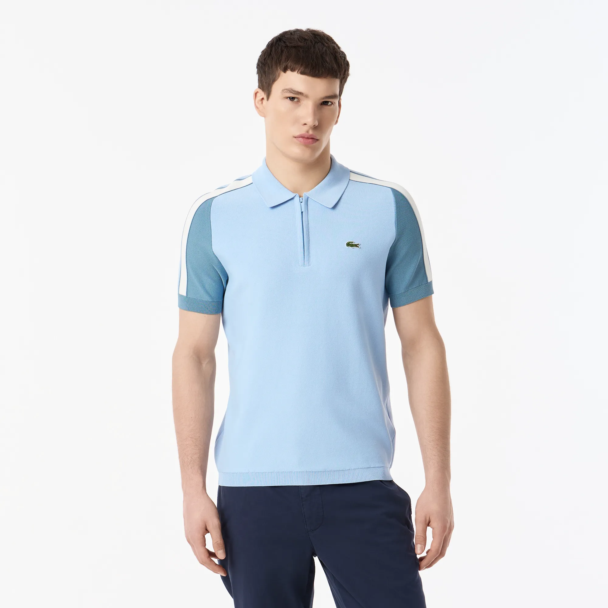 Мужское трикотажное поло Lacoste из вискозы на молнии, голубой, арт. ah0501
