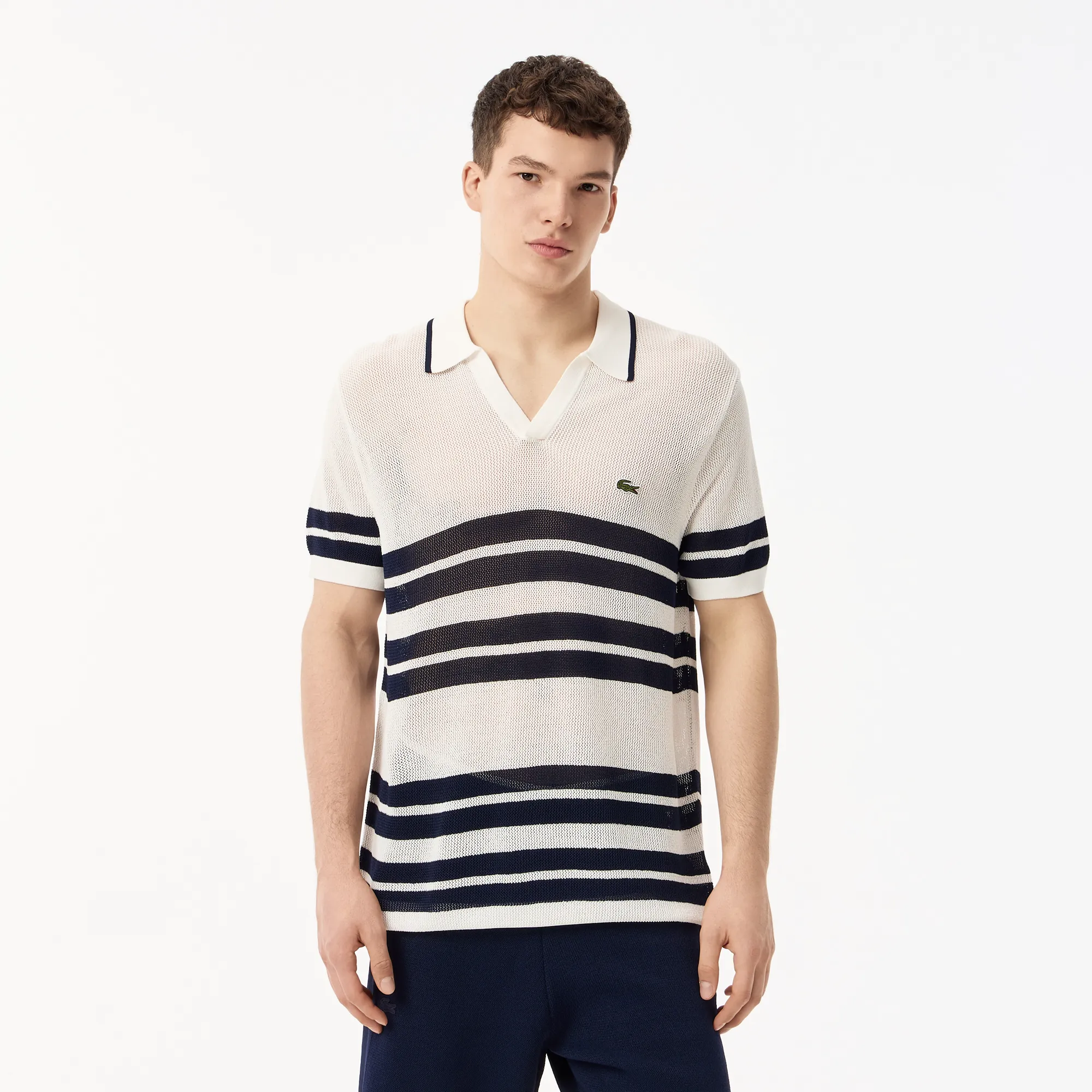 Мужское вязаное поло Lacoste в полоску, белый, арт. ah0511