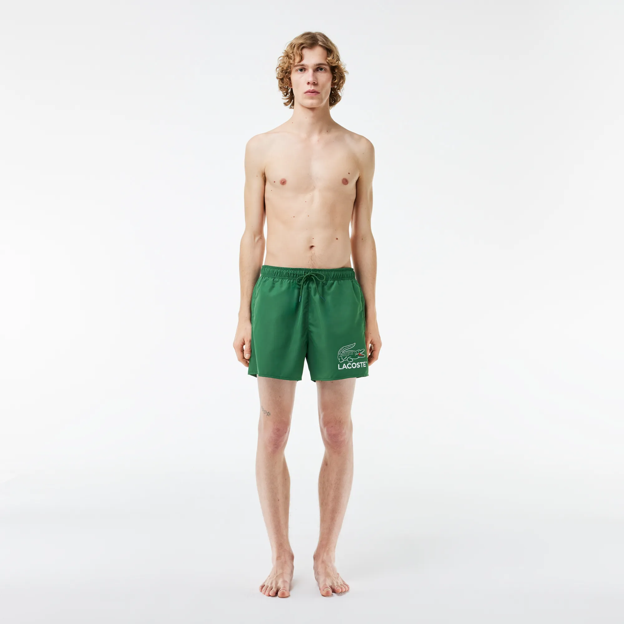 Шорты оснащены удобным эластичным поясом со шнурком для идеальной фиксации и внутренними сетчатыми брифами для дополнительного комфорта и поддержки. Знаменитый логотип-крокодил Lacoste деликатно расположен, подчеркивая статус и внимание к деталям. Независимо от того, планируете ли вы активные водные виды спорта или расслабленный день на солнце, эти купальные шорты обеспечат вам стильный вид и абсолютную свободу движений. Выбирайте Lacoste для лета, полного элегантности и уверенности!