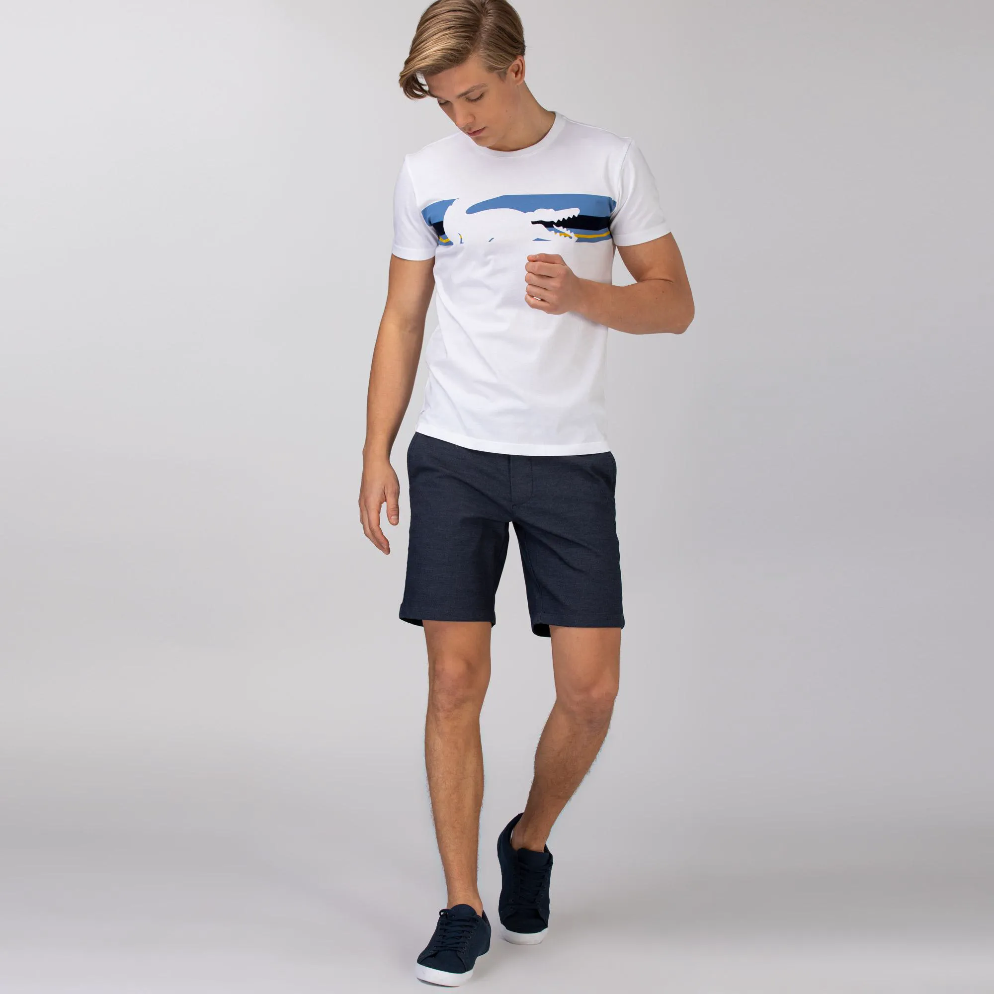 Приталенный крой Slim Fit обеспечивает современный и аккуратный силуэт, подчеркивая достоинства фигуры, при этом не стесняя движений. Мягкий и дышащий материал гарантирует максимальный комфорт даже в самые жаркие дни, делая эти шорты идеальным выбором для активного отдыха, городских прогулок или вечерних встреч. Инвестируйте в качество и стиль, которые прослужат вам долго. Мужские шорты Lacoste Slim Fit — это не просто одежда, это выражение вашей индивидуальности и безупречного вкуса. Почувствуйте разницу с Lacoste!