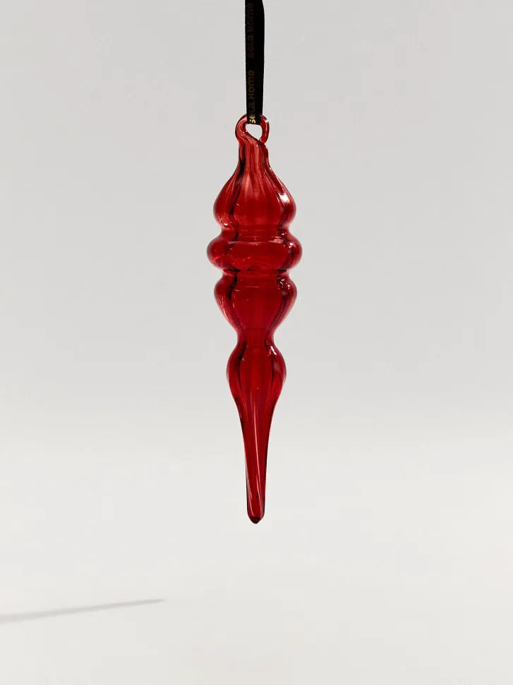 Привнесите в свой дом атмосферу волшебства и праздничного сияния с нашим эксклюзивным елочным украшением из стекла. Это великолепное изделие, выполненное в глубоком красном цвете, станет центральным элементом вашей новогодней елки, приковывая взгляды своей изысканностью и блеском. Уникальная форма украшения, сочетающая плавные линии и объемные элементы, придает ему особую элегантность и утонченность.