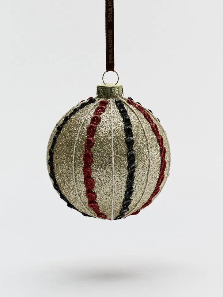 Представляем вашему вниманию изысканное елочное украшение из стекла, которое мгновенно преобразит вашу новогоднюю елку и весь праздничный интерьер. Это великолепное изделие ручной работы отличается утонченным дизайном: искрящаяся золотистая основа украшена элегантными красными и черными узорами, создавая неповторимый облик. Каждая деталь тщательно проработана, чтобы придать вашей елке особый шарм и блеск, делая ее центральным акцентом торжества.