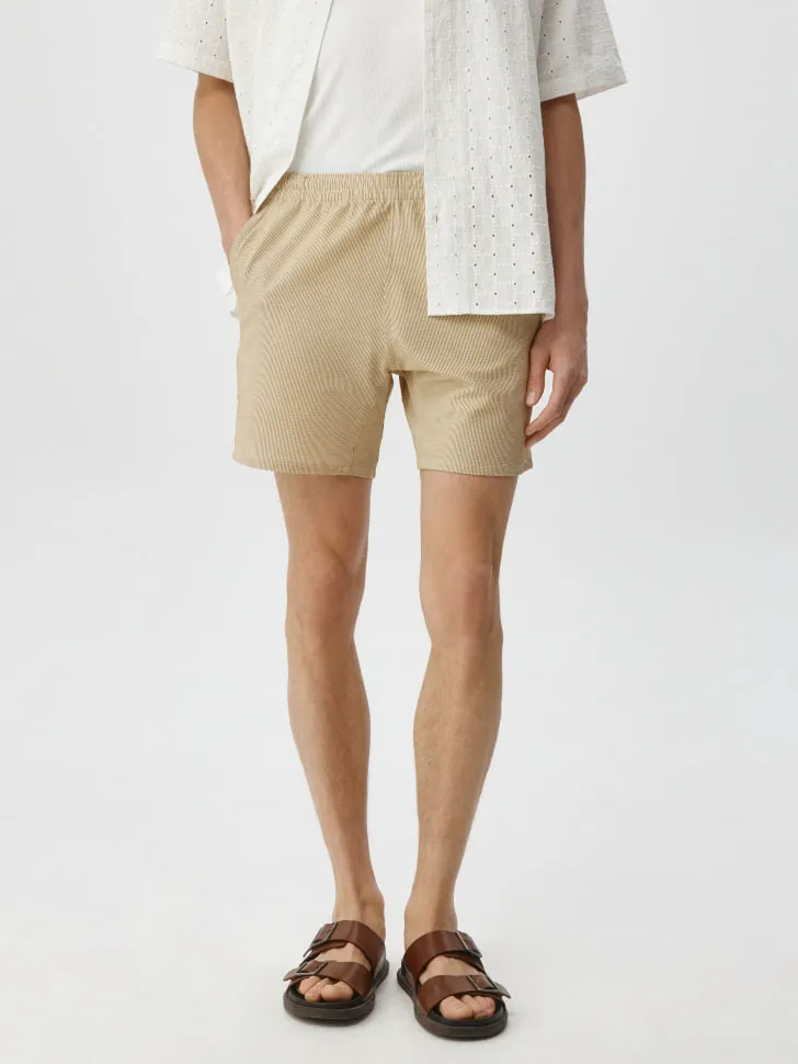 Их классический полосатый принт – это вечная классика, которая никогда не выйдет из моды. Он прекрасно дополняет любой летний образ, легко сочетаясь с различными футболками, майками и рубашками поло. Эластичный пояс со шнурком обеспечивает идеальную посадку, а удобные боковые карманы позволяют всегда держать под рукой необходимые мелочи. Эти пляжные шорты станут ключевым элементом вашего летнего гардероба, подчеркивая ваш вкус и даря ощущение свободы. Будьте готовы к приключениям, солнечным дням и незабываемым моментам с нашими стильными пляжными шортами!