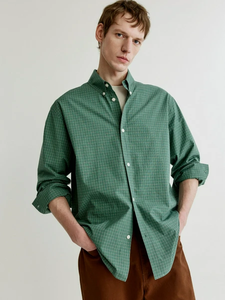 Хлопковая рубашка SELA в клетку, зеленый, арт. 37275