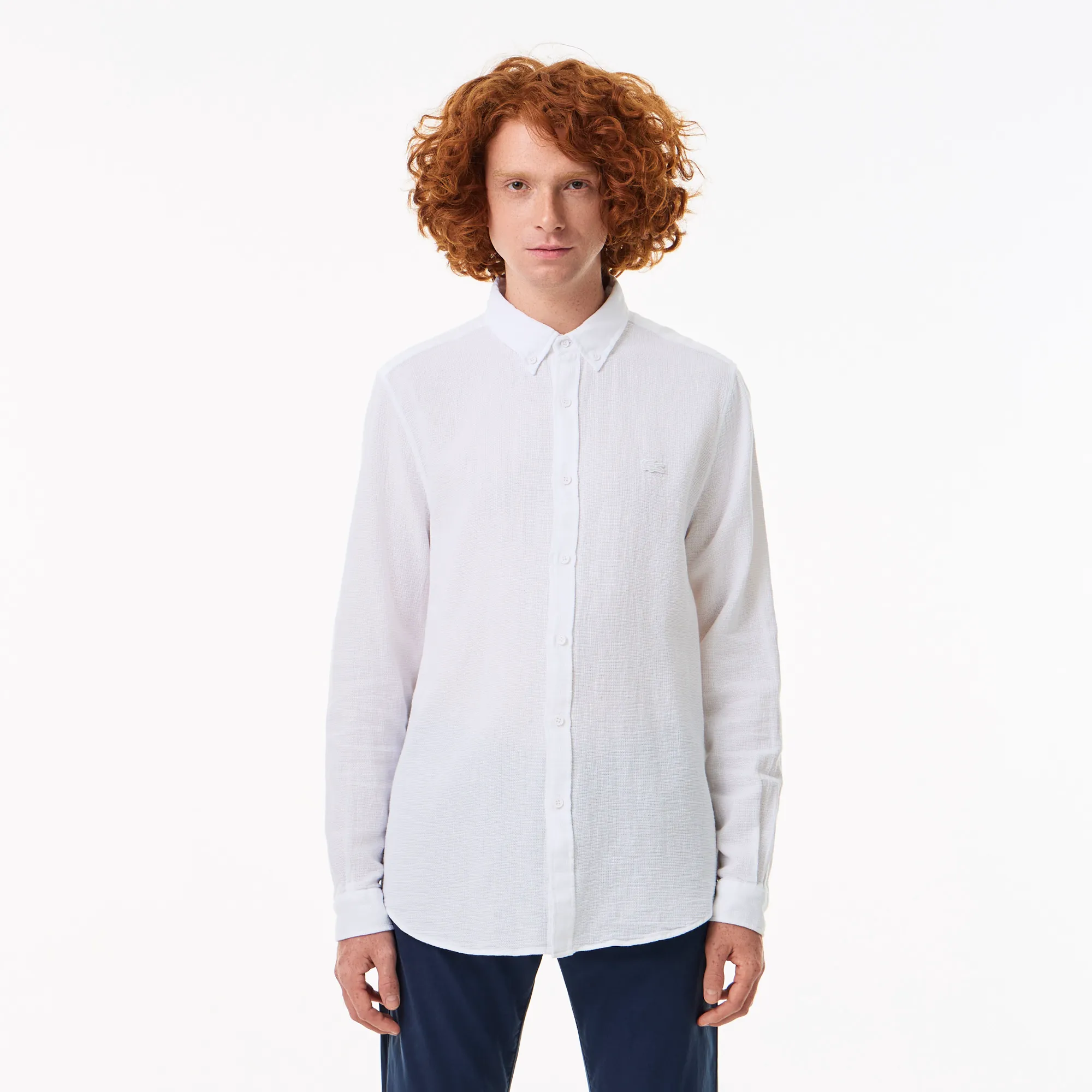 Представляем вашему вниманию мужскую хлопковую рубашку Lacoste – воплощение элегантности и непревзойденного комфорта. Эта рубашка, выполненная из 100% натурального хлопка, обеспечивает исключительную мягкость и превосходную воздухопроницаемость, что делает ее идеальным выбором для любого времени года. Классический белый цвет придает ей универсальность, позволяя легко комбинировать с различными элементами гардероба – от строгих брюк до повседневных джинсов.