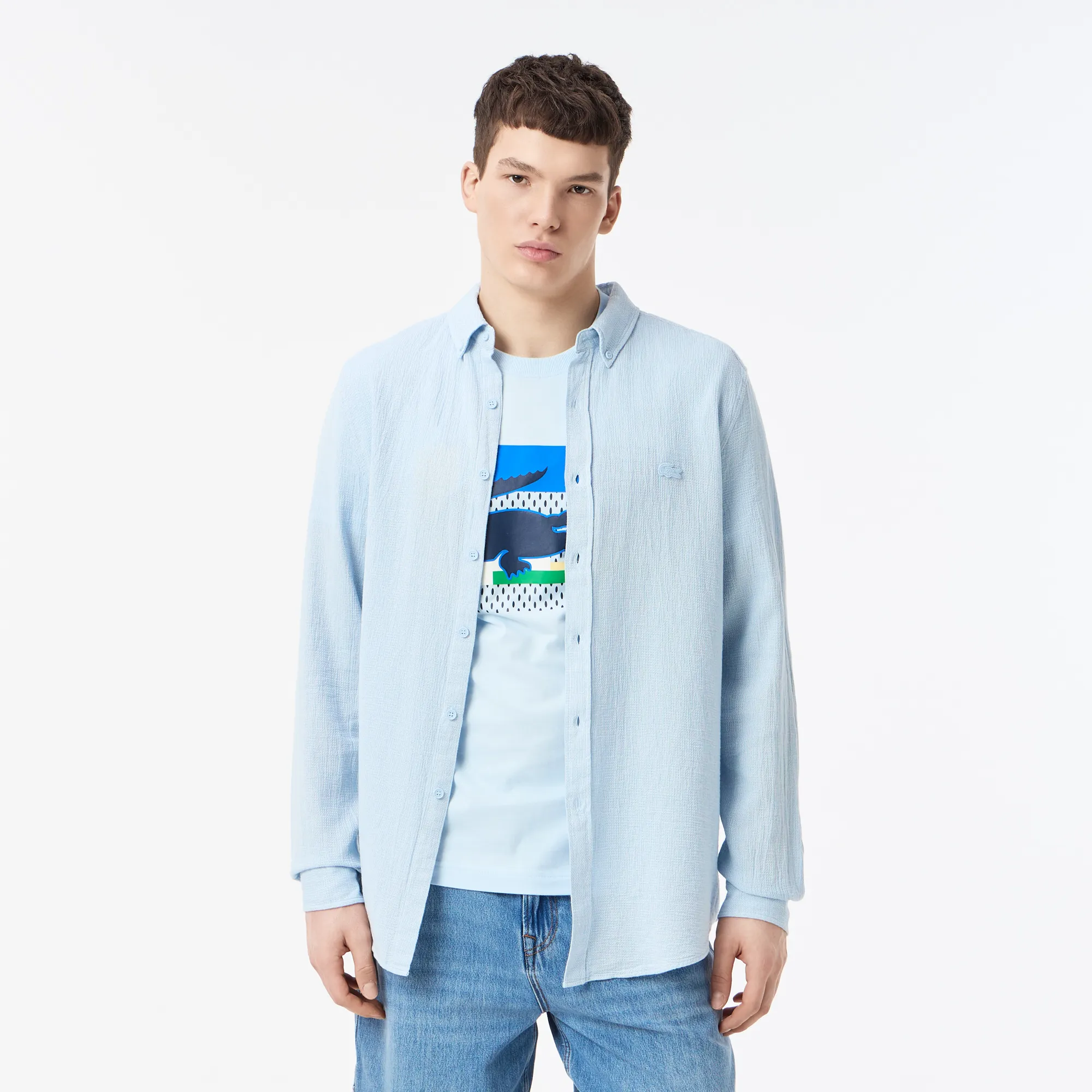 Мужская хлопковая рубашка Lacoste, голубой, арт. ch0434