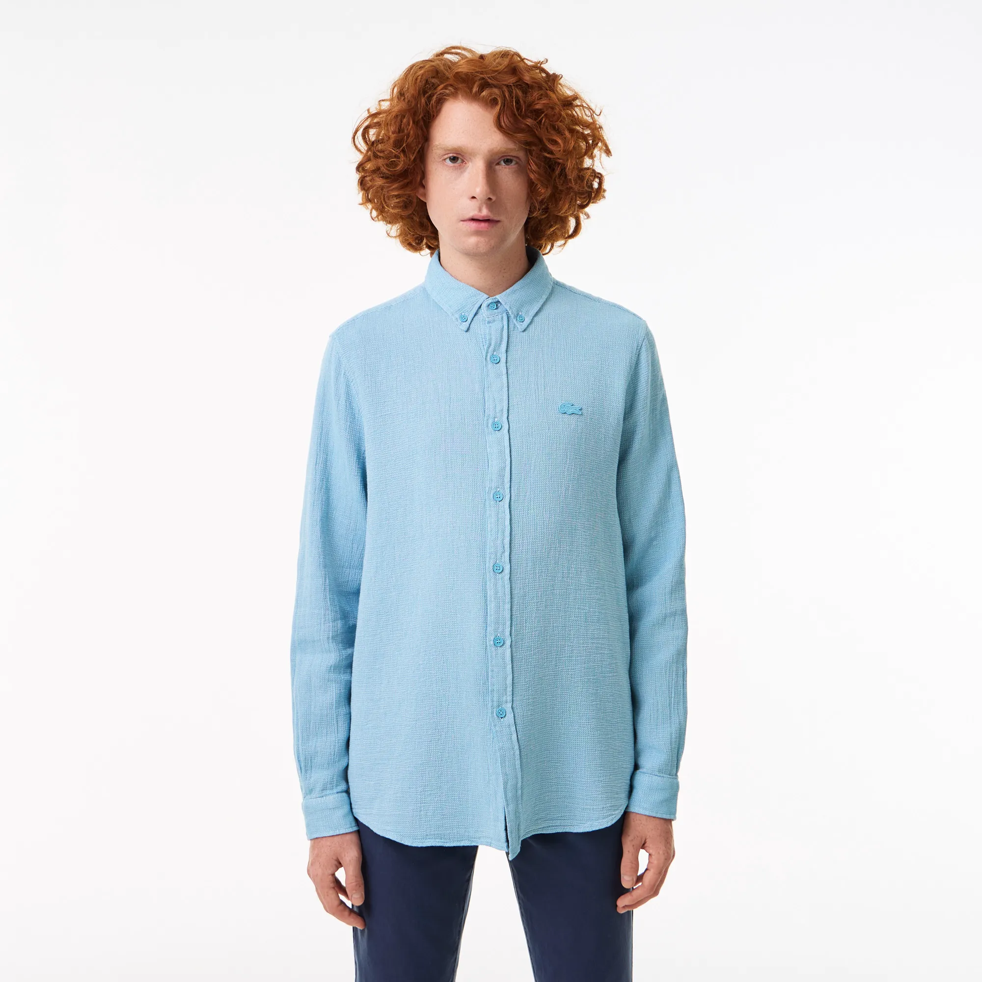 Универсальный и благородный голубой оттенок позволит легко интегрировать эту рубашку в любой гардероб. Она идеально сочетается как с повседневными джинсами и чиносами, так и с более формальными брюками, создавая образ для любой ситуации – будь то деловая встреча, прогулка с друзьями или вечернее мероприятие. Знаковый логотип Lacoste, аккуратно вышитый на груди, подчеркивает принадлежность к миру высокой моды и безупречного вкуса. Инвестируйте в свой стиль с рубашкой, которая прослужит долгие годы, сохраняя свой первозданный вид и исключительный комфорт.