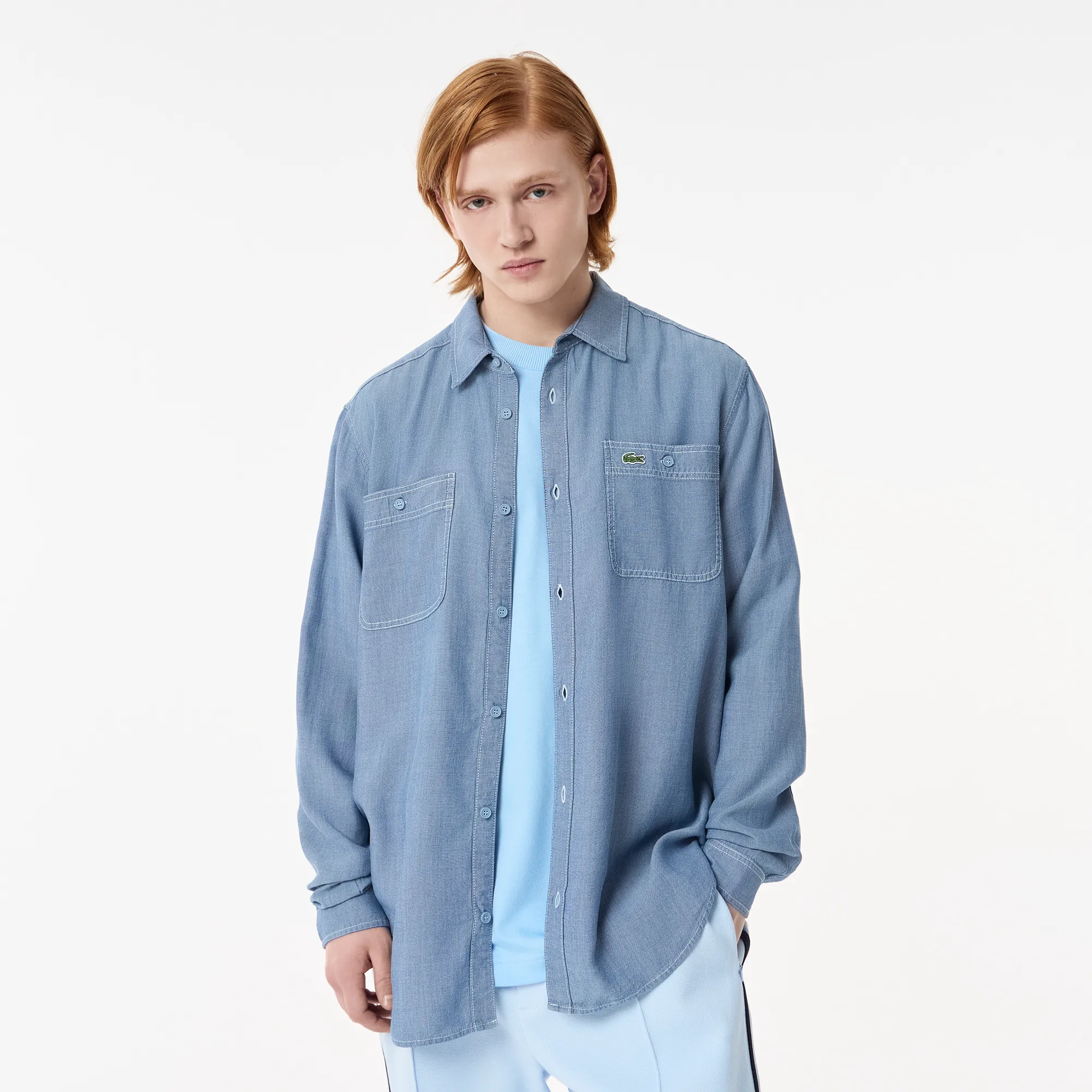 Мужская лёгкая рубашка Lacoste из экологического материала тенсель, голубой, арт. ch0515
