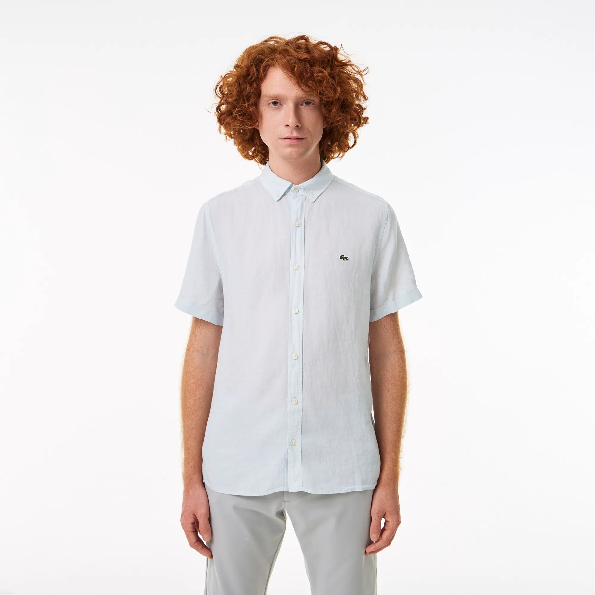 Мужская льняная рубашка Lacoste с коротким рукавом, голубой, арт. ch5699t
