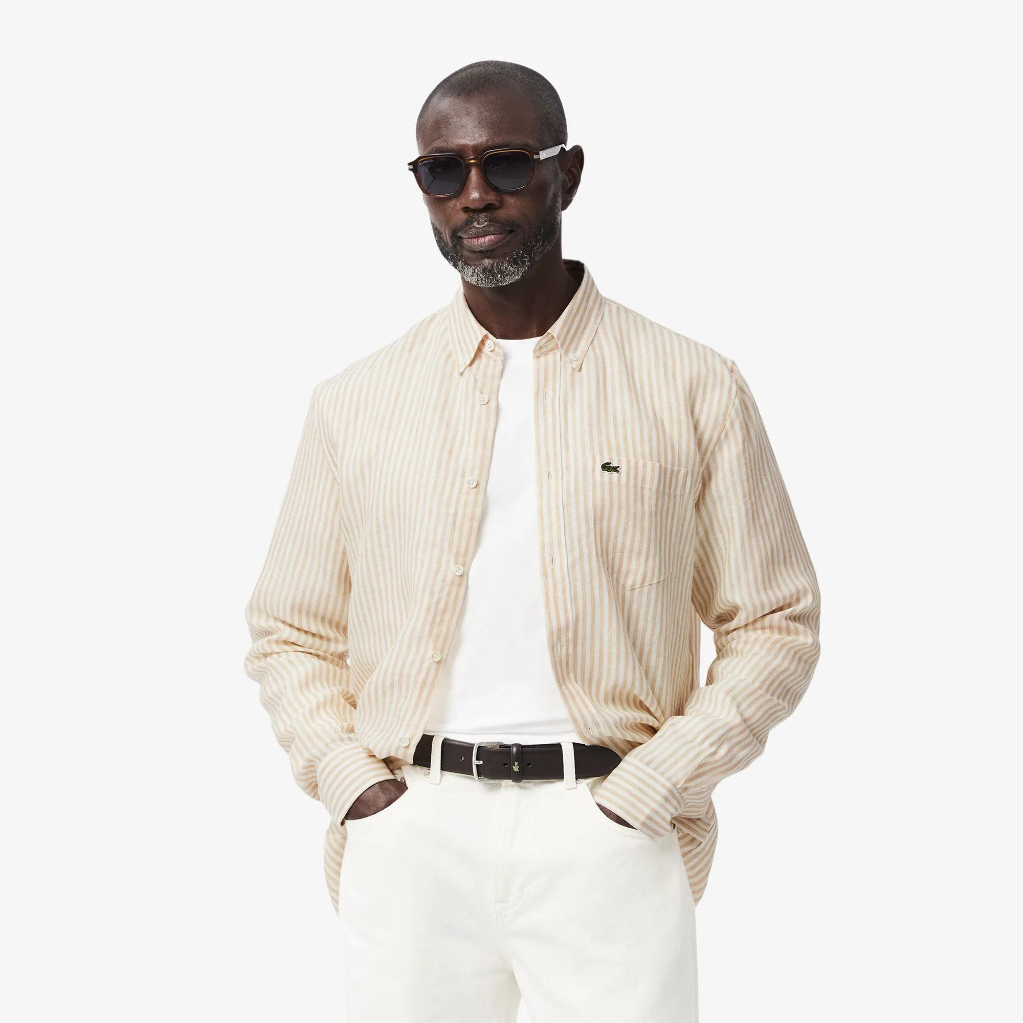 Мужская льняная рубашка Lacoste в полоску, бежевый, арт. ch6985
