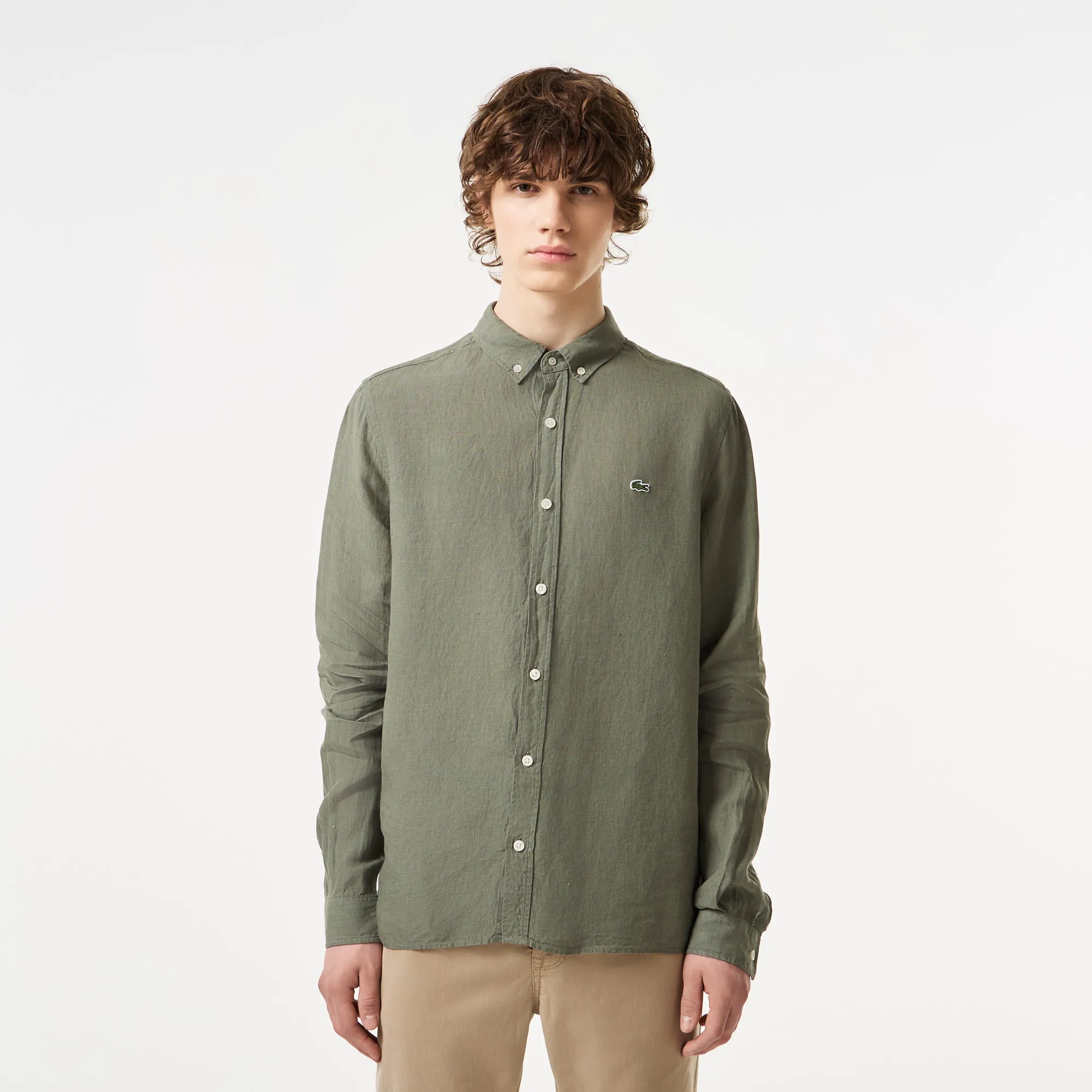 Мужская льняная рубашка Lacoste, зеленый, арт. ch5692t