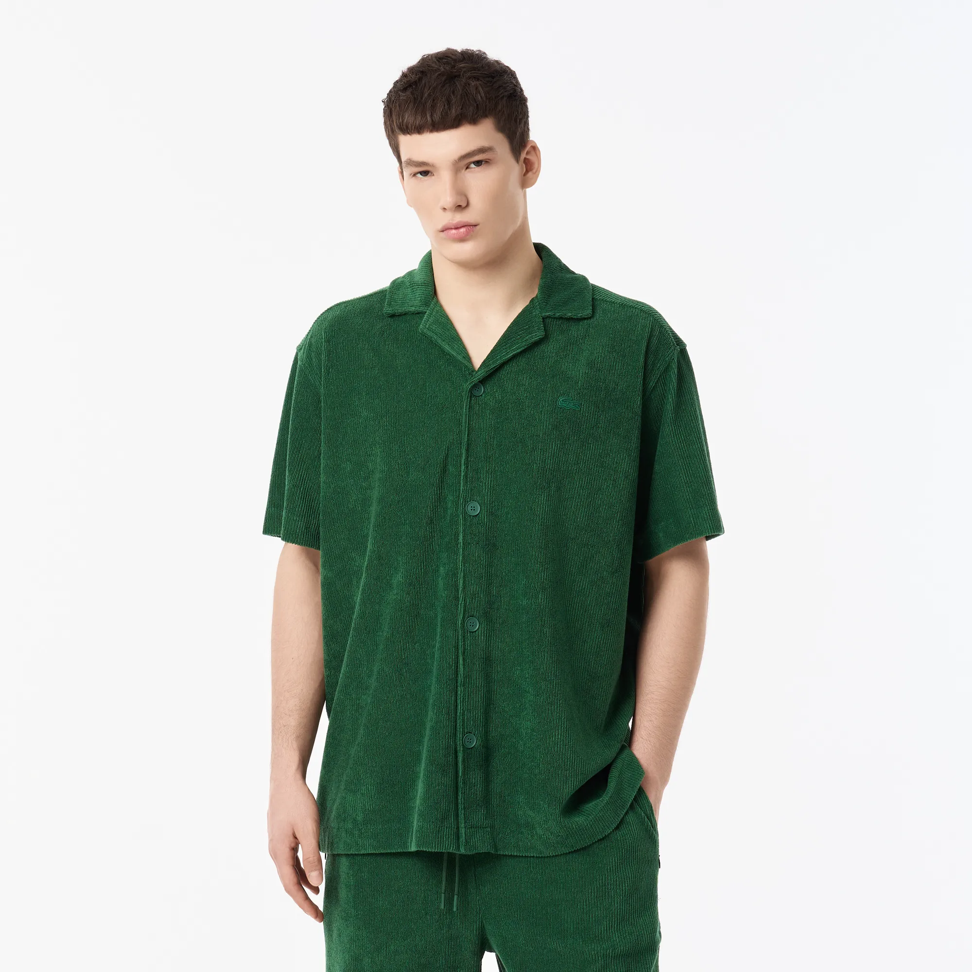 Изготовленная из 100% натурального хлопка, она обеспечивает исключительную мягкость и воздухопроницаемость, поддерживая комфорт в течение всего дня. Фирменный крой Lacoste гарантирует безупречную посадку, а изысканный зелёный оттенок добавляет нотку свежести и индивидуальности вашему образу. Эта модель с легендарным логотипом крокодила — это не просто одежда, это символ статуса и безупречного вкуса. Приобретая эту рубашку, вы инвестируете в долговечность, стиль и непревзойденное качество.