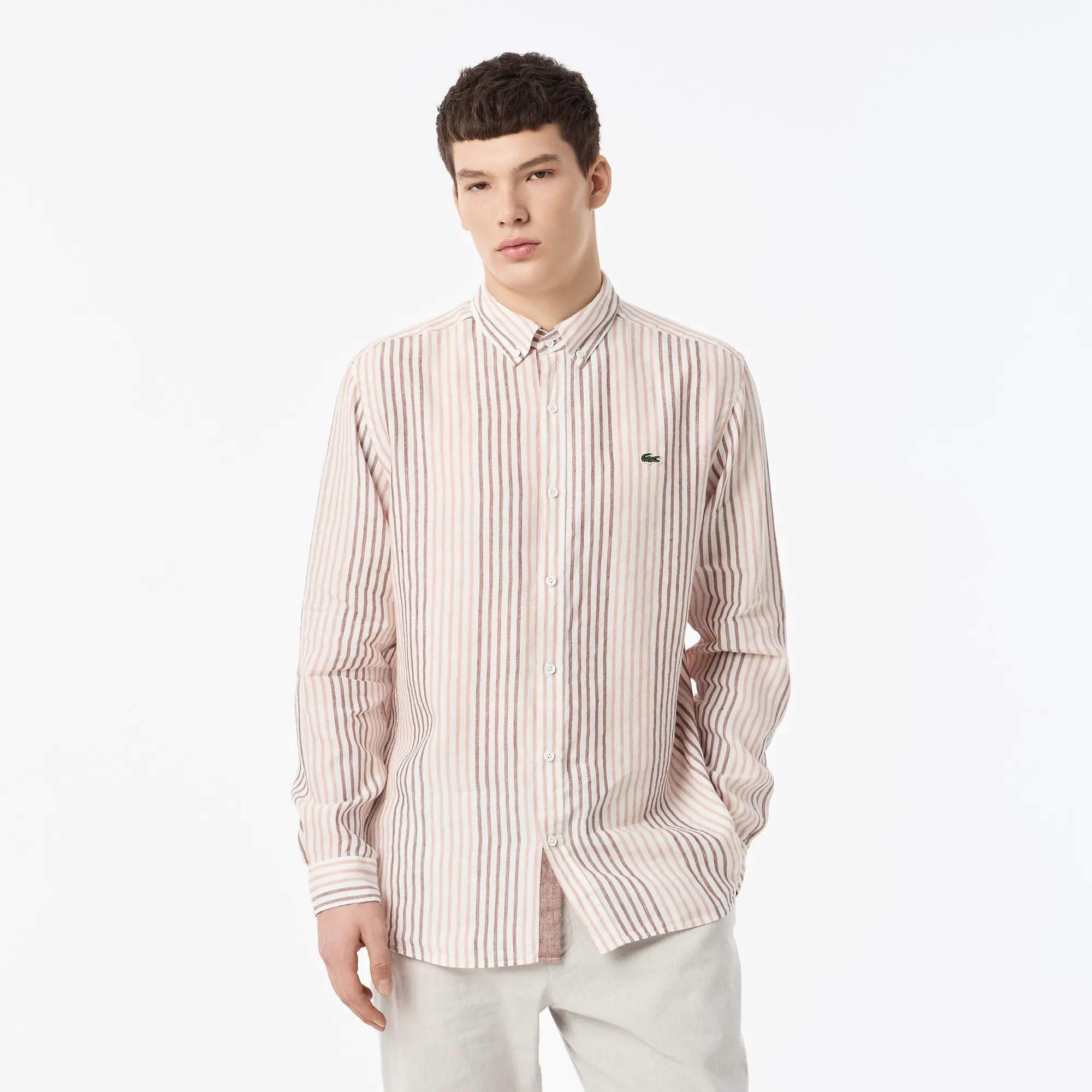 Мужская рубашка Lacoste из льна, коричневый, арт. ch0521