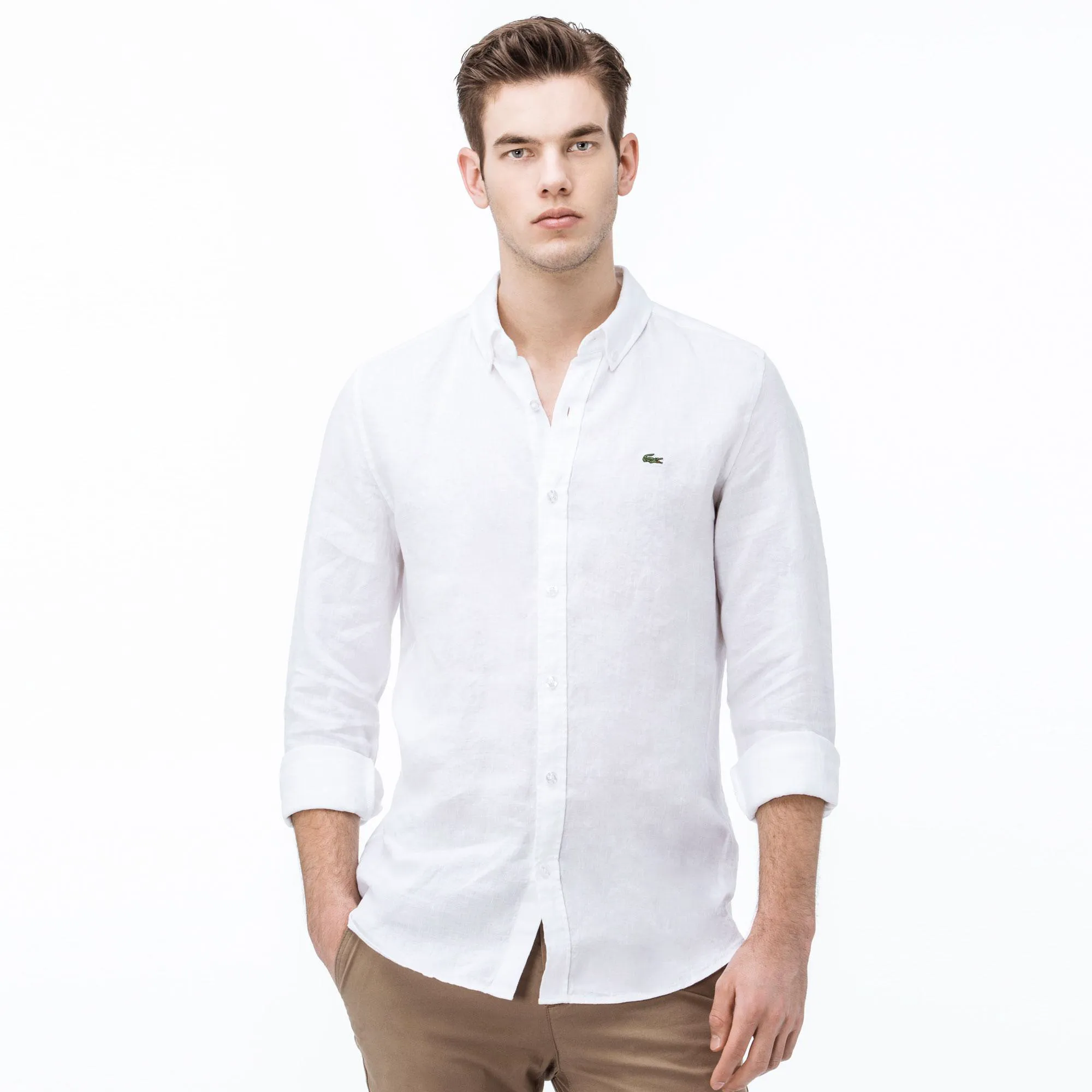 Мужская рубашка Lacoste из льна Slim Fit, белый, арт. ch0826l
