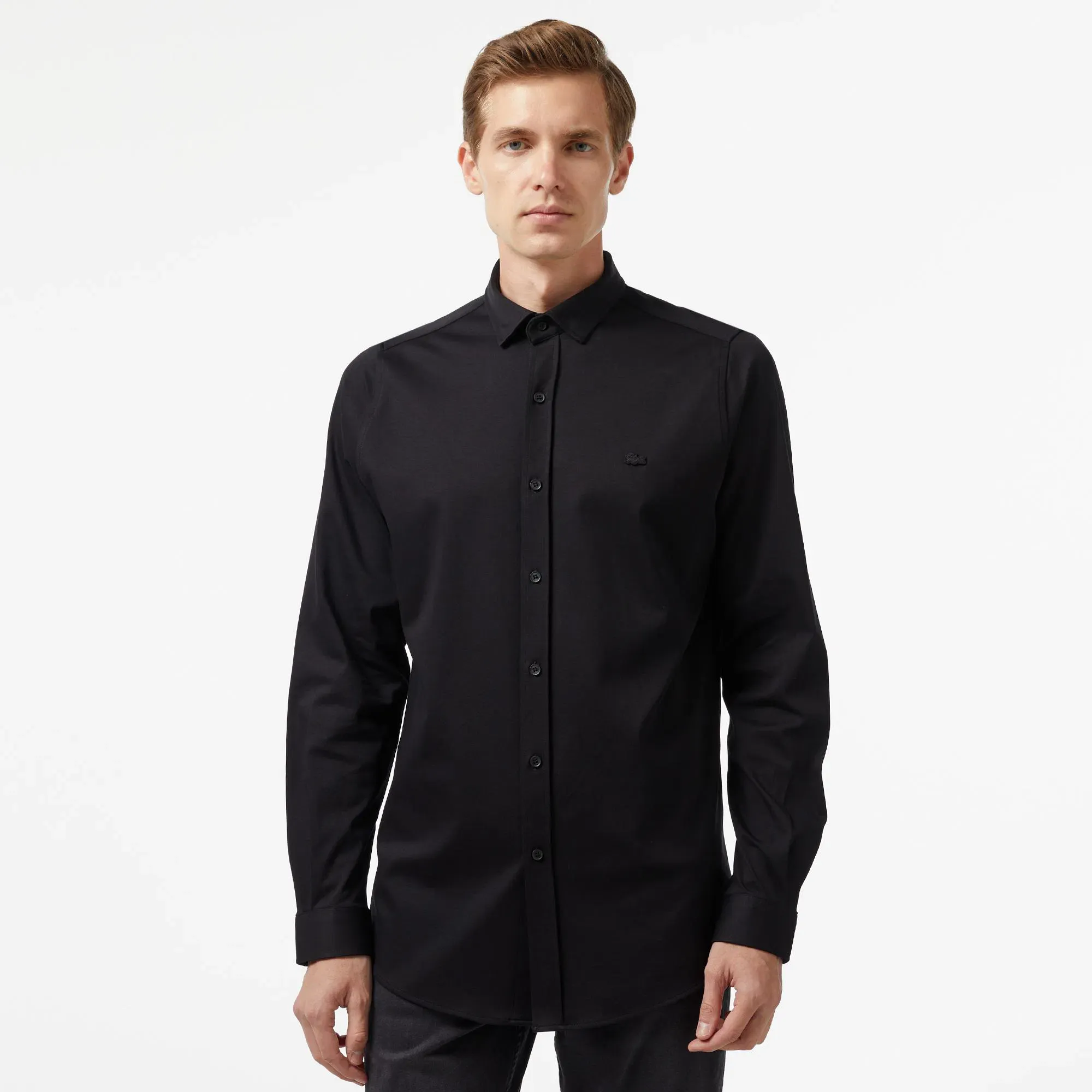 Изысканный чёрный цвет делает её универсальной базой для любого гардероба. Носите её с классическими брюками для создания строгого делового образа или сочетайте с джинсами для более расслабленного, но всегда стильного кэжуал-лука. 🌟 Рубашка выполнена из дышащего и приятного к телу материала, что гарантирует комфорт даже в течение самого долгого дня. Выбирая Lacoste, вы выбираете безупречное качество и мировой стандарт стиля, подтвержденный легендарным логотипом-крокодилом.