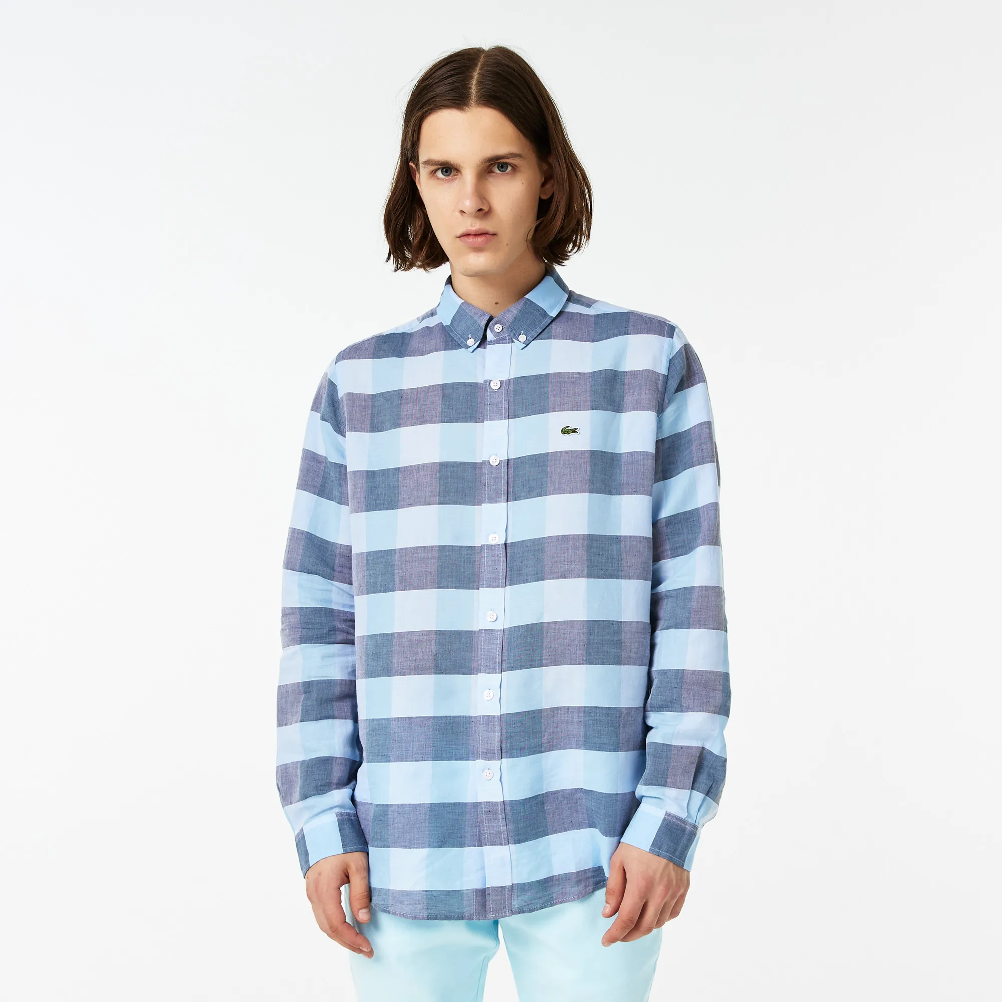 Откройте для себя идеальное сочетание стиля и комфорта с мужской рубашкой Lacoste Slim Fit! Эта изысканная модель в притягательном голубом цвете станет незаменимой частью вашего гардероба. Созданная для современного мужчины, ценящего элегантность и качество, рубашка Lacoste подчеркивает индивидуальность и уверенность. 🐊
