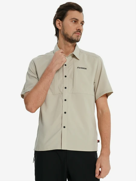 Мужская рубашка с коротким рукавом Zanier создана специально для любителей походов и активного времяпрепровождения. Модель выполнена в универсальном бежевом цвете и обладает свободным кроем, обеспечивающим отличную вентиляцию и свободу движений.