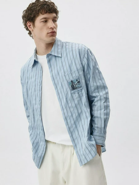 Рубашка представлена в элегантном голубом цвете с тонкой полоской и украшена эксклюзивным патчем, вдохновленным работами легендарного художника Клода Моне. Это не просто одежда, это способ выразить свою индивидуальность и добавить изысканную нотку в ваш повседневный стиль.