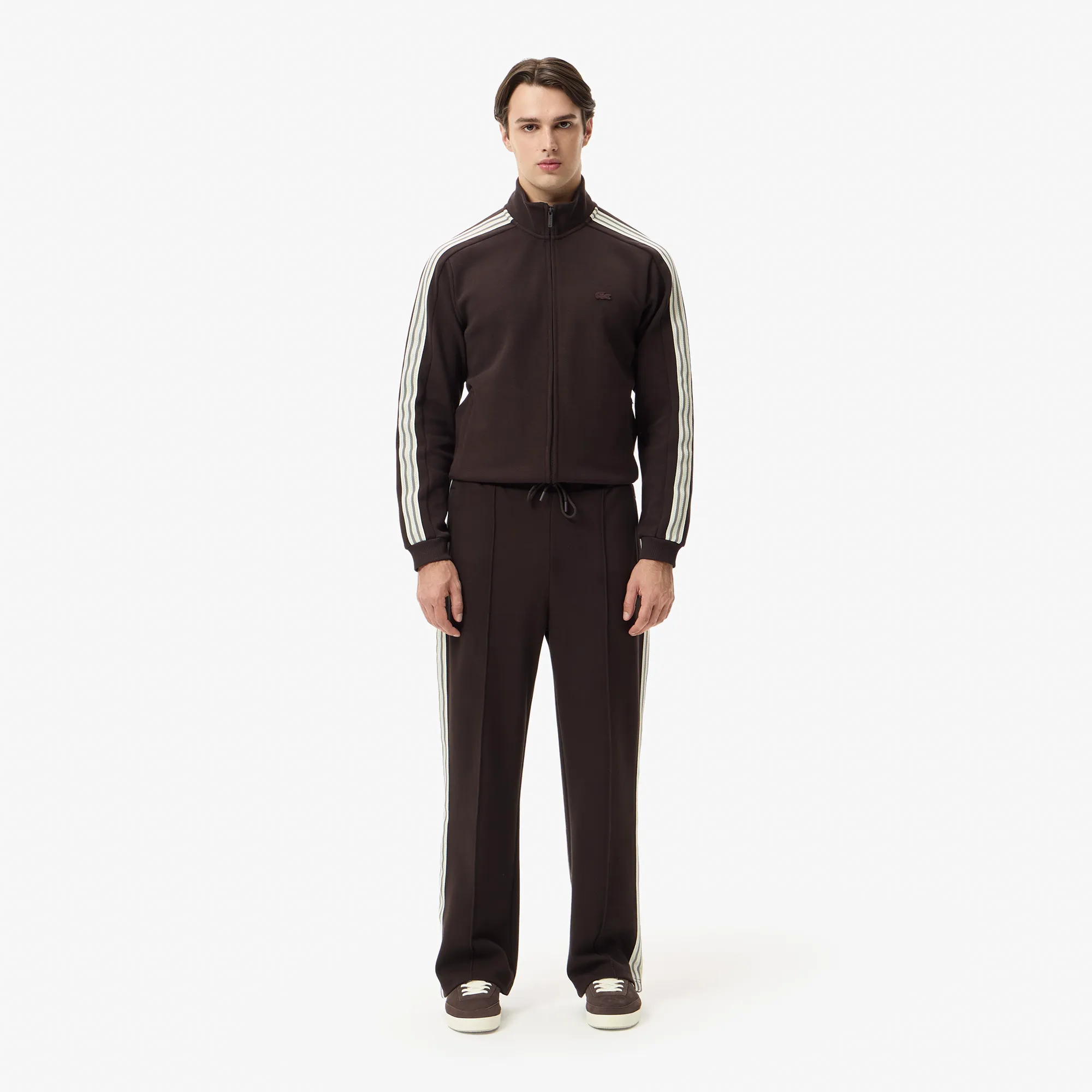 Изготовленные из высококачественного 100% хлопка, эти брюки обеспечивают превосходную мягкость, приятны к телу и позволяют коже дышать, гарантируя максимальный комфорт в течение всего дня. Облегающий крой SLIM FIT элегантно подчеркивает силуэт, при этом не сковывая движений, что делает их идеальными как для спортивных занятий, так и для расслабленного отдыха. Глубокий коричневый цвет в сочетании с культовыми белыми полосками по бокам придает этим брюкам особый шик и узнаваемый спортивный стиль Lacoste. Добавьте эту универсальную вещь в свой гардероб, чтобы всегда выглядеть безупречно и чувствовать себя уверенно, независимо от ситуации. Выбирайте качество и стиль Lacoste!