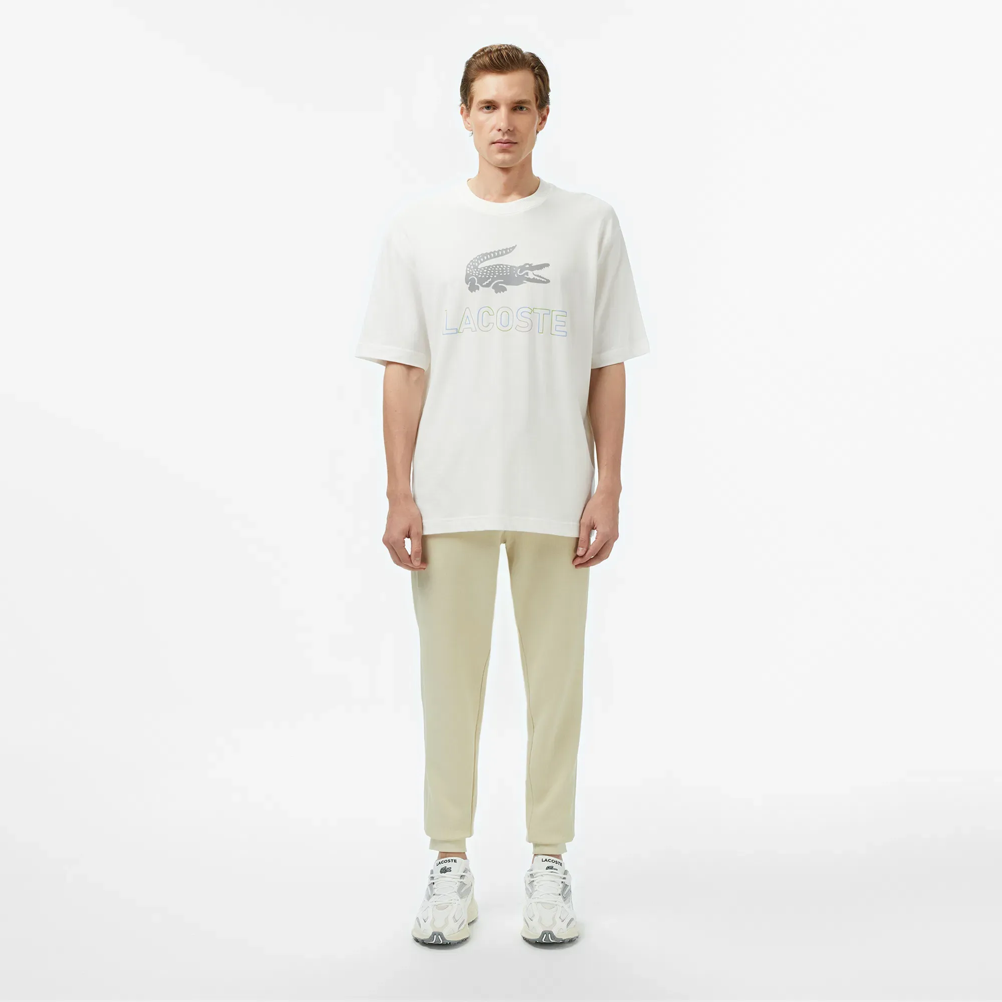Элегантный светло-бежевый оттенок делает эти брюки невероятно универсальными: они легко впишутся в любой гардероб и станут отличной основой для создания как спортивных, так и повседневных образов. Фирменный логотип Lacoste, символ безупречного вкуса и долговечности, деликатно дополняет дизайн. Инвестируйте в качество, которое проверено временем, и наслаждайтесь бескомпромиссным стилем и комфортом. Мужские брюки Lacoste — ваш выбор для активной и стильной жизни.