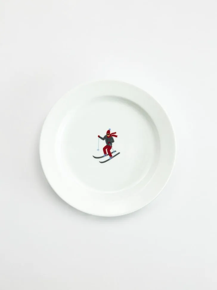 Представляем вашему вниманию изысканную десертную тарелку из высококачественного фарфора, которая преобразит любую трапезу и сделает ее по-настоящему особенной. Этот предмет посуды — не просто емкость для десерта, а настоящее произведение искусства, способное добавить шарма и индивидуальности вашему столу. В центре тарелки красуется детализированное изображение лыжника, мчащегося по заснеженному склону, что привносит элемент динамики и свежести в ваш интерьер. Дизайн вдохновлен зимними видами спорта, что делает ее идеальным выбором для тематических вечеринок или просто для создания уютной атмосферы в холодное время года.