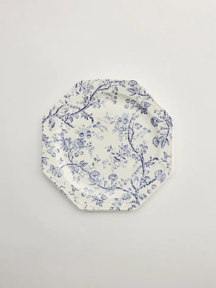 Добро пожаловать в мир изысканной посуды! Представляем вашему вниманию десертную тарелку из высококачественного фарфора, которая преобразит любой стол. Эта тарелка — не просто предмет сервировки, а настоящее произведение искусства, сочетающее в себе традиционную элегантность и современную функциональность. Ее уникальный восьмиугольный дизайн и нежный цветочный узор, выполненный в благородных оттенках синего на белом фоне, создают атмосферу уюта и роскоши. Идеально подходит для подачи ваших любимых десертов, изысканных закусок или свежих фруктов.