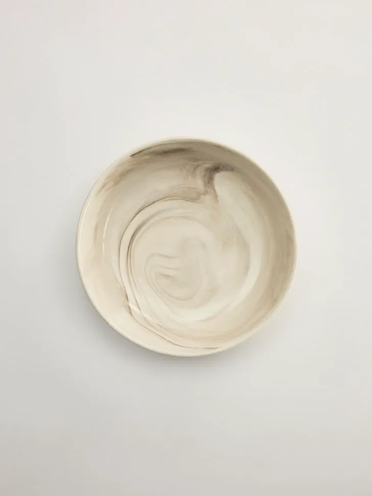 Представляем вашему вниманию изысканную глубокую тарелку из керамики, созданную для ценителей красоты и функциональности на кухне. Эта тарелка станет центральным элементом вашей сервировки, привнося в каждый прием пищи нотку утонченности и стиля. Выполненная из высококачественной керамики, она отличается не только своим привлекательным внешним видом, но и долговечностью. Уникальный бежево-коричневый мраморный узор имитирует природные материалы, делая каждую тарелку по-настоящему особенной и неповторимой. Она прекрасно впишется как в классический, так и в современный интерьер, дополняя любую кухонную композицию.