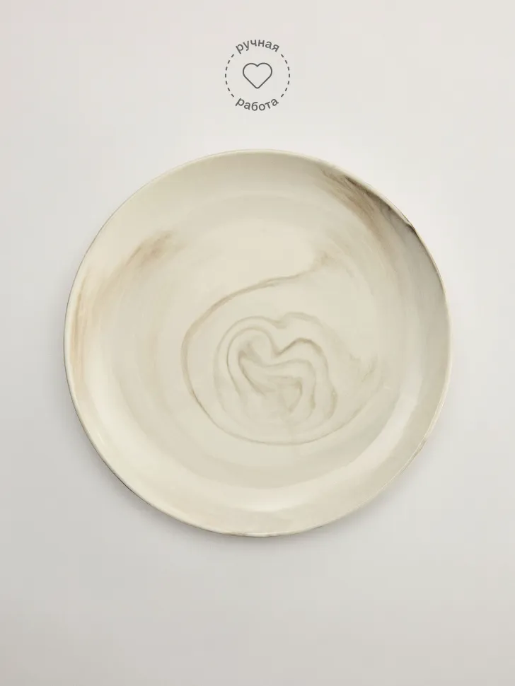Толстовки и свитшотыПредставляем вашему вниманию обеденную тарелку из высококачественной керамики – идеальное сочетание функциональности и утонченного дизайна. Эта тарелка станет центральным элементом вашей сервировки, привнося в каждый прием пищи особую атмосферу и элегантность. Уникальный дизайн с нежными молочно-бежевыми разводами, напоминающими природный мрамор, подчеркивает её эксклюзивность, ведь каждое изделие выполнено вручную с большим вниманием к деталям.